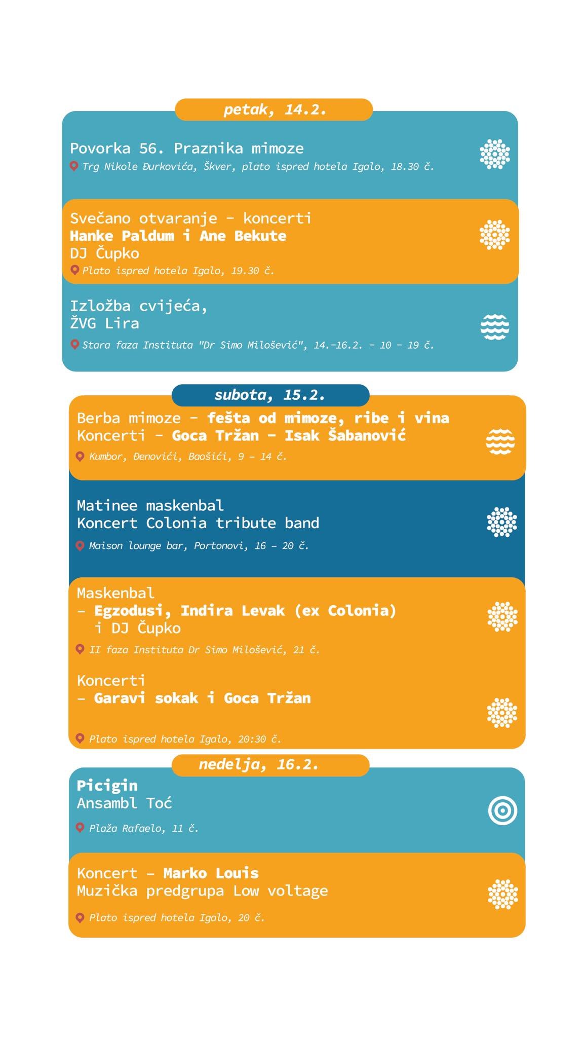 Facebook i Instagram stranicama Praznika mimoze i organizatora manifestacije.